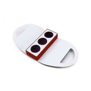 ** The cavity is removable and the base is of card board.It has handle to carry and the handle can be joined via jute string. It can easily bear the weight of jars with dry fruits and still can be carried via handle.Jar volume of 190 ml and size of 3.25 inch height,2.5 inch diameter; can easily fit into the cavity of dia. 2.5 inch as provided.**