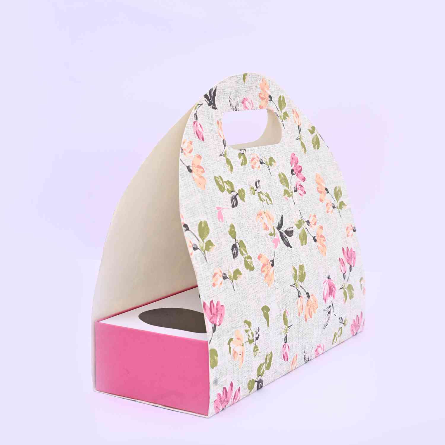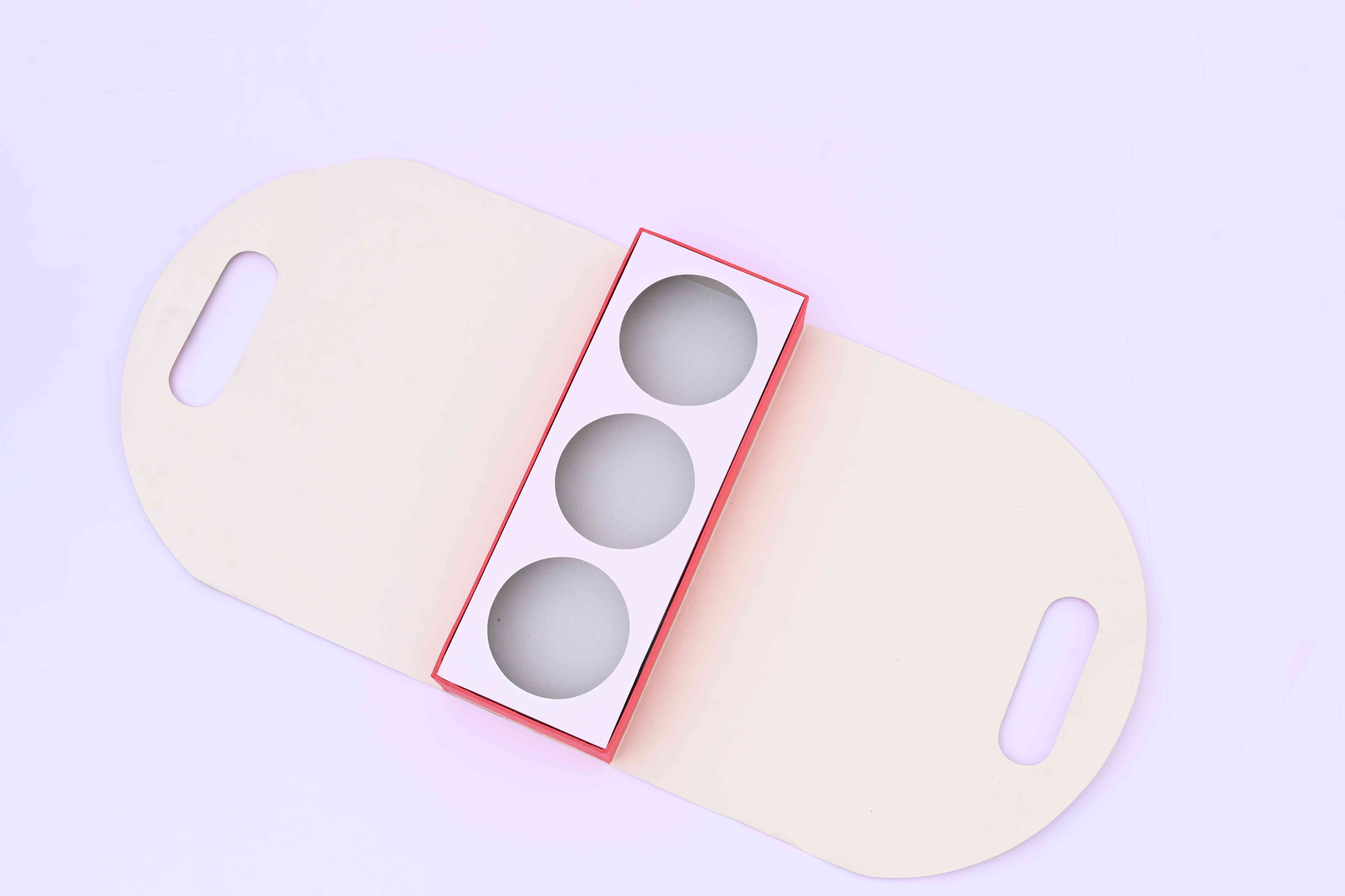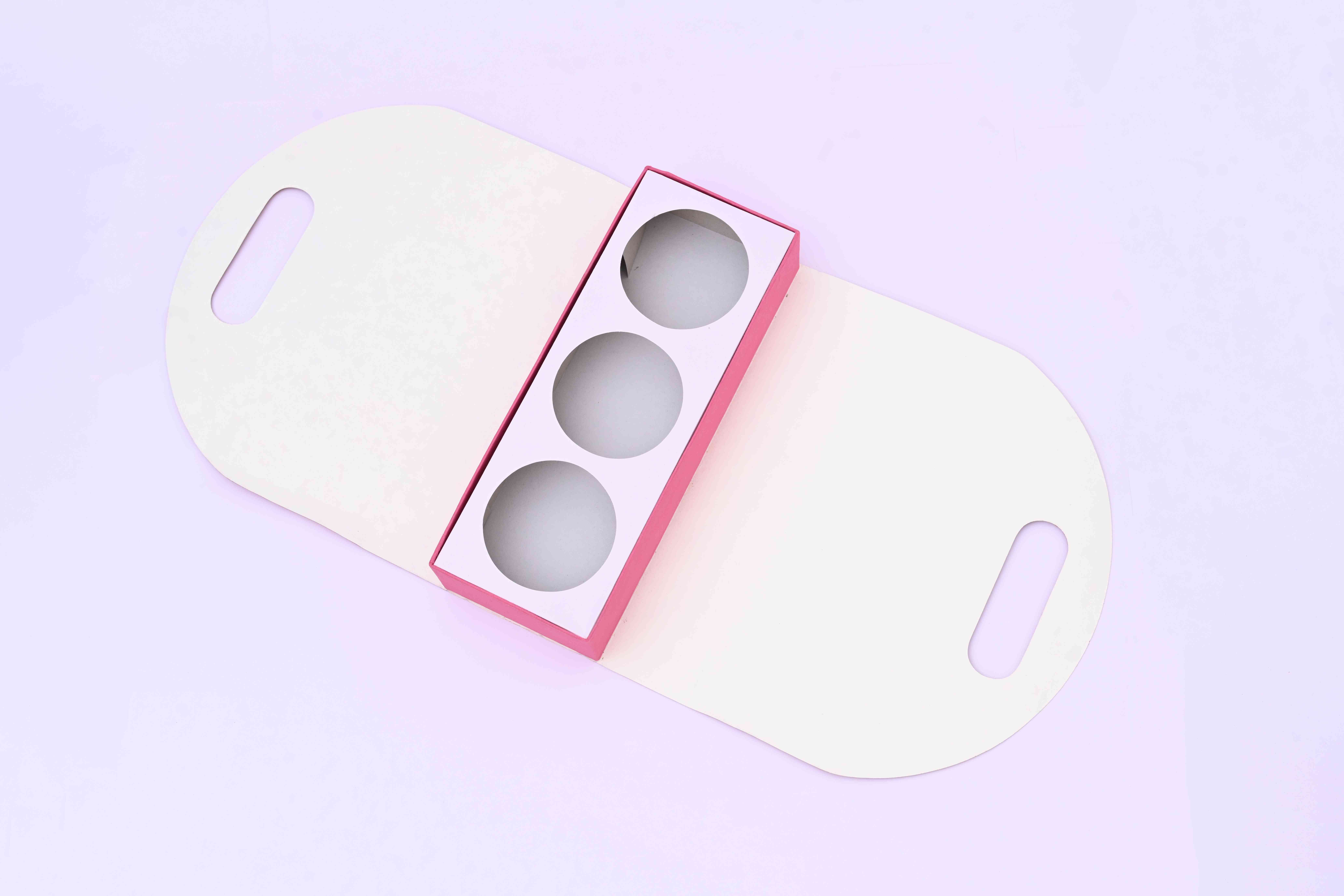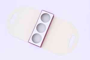 ** This box has a rigid bottom and a foldable cover around . It comes detachable cavity having 4 round cuts of dia 3.5 inch ,suitable for keeping jars or tube box it has a notching on the top which can be used to hold the box ,wchich is held together by a jute string **