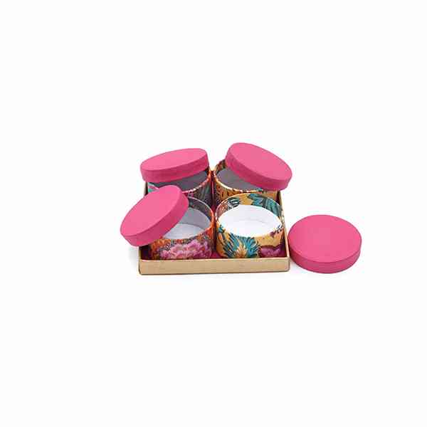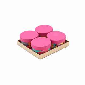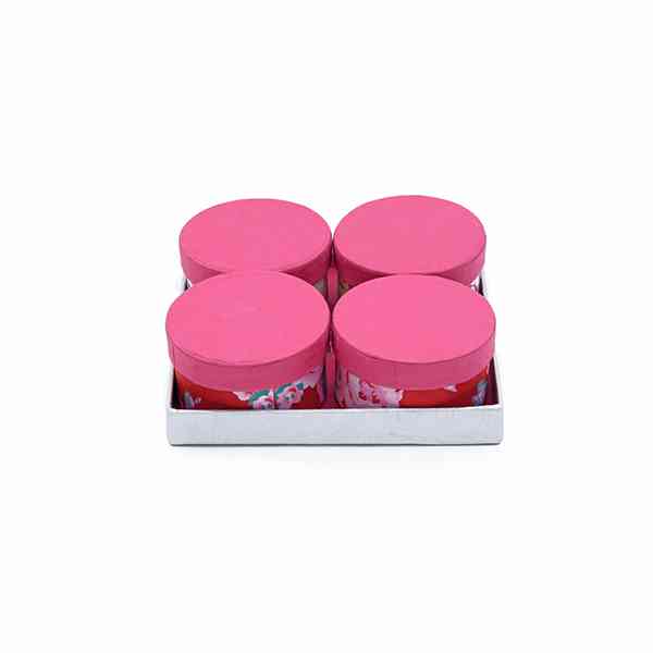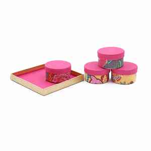 ** The tray size is 5.75*5.75*0.5 inch. Set of four round boxes with tray**